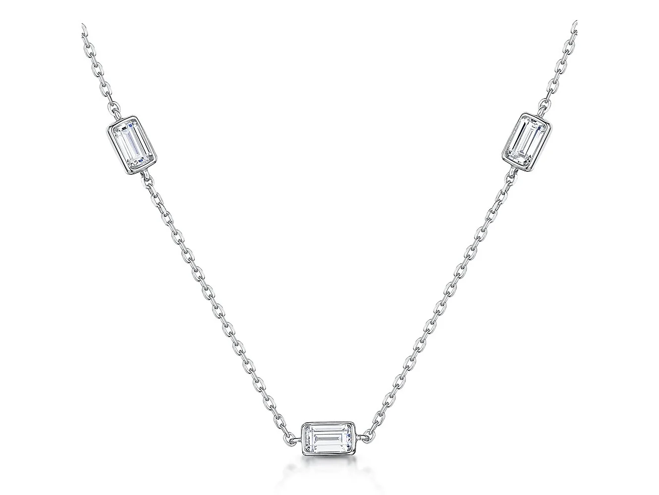 Silver 4mm Cubic Tennis 3 Claw Necklace
